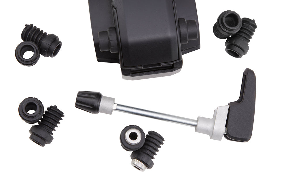 The unique ForkChop is a highly versatile fork mount bike carrier.It transports virtually any bike, including both quick release and thru-axles, and does it all without touching the bike frame.The ForkChop even fits 15mm thru-axle fat bikes out of the box or 9mm x 135mm with the optional Fat Bike QR Locking Skewer accessory.The split design makes it ideal for use with a cargo basket or for a minimalist look on your vehicle's roof rack.