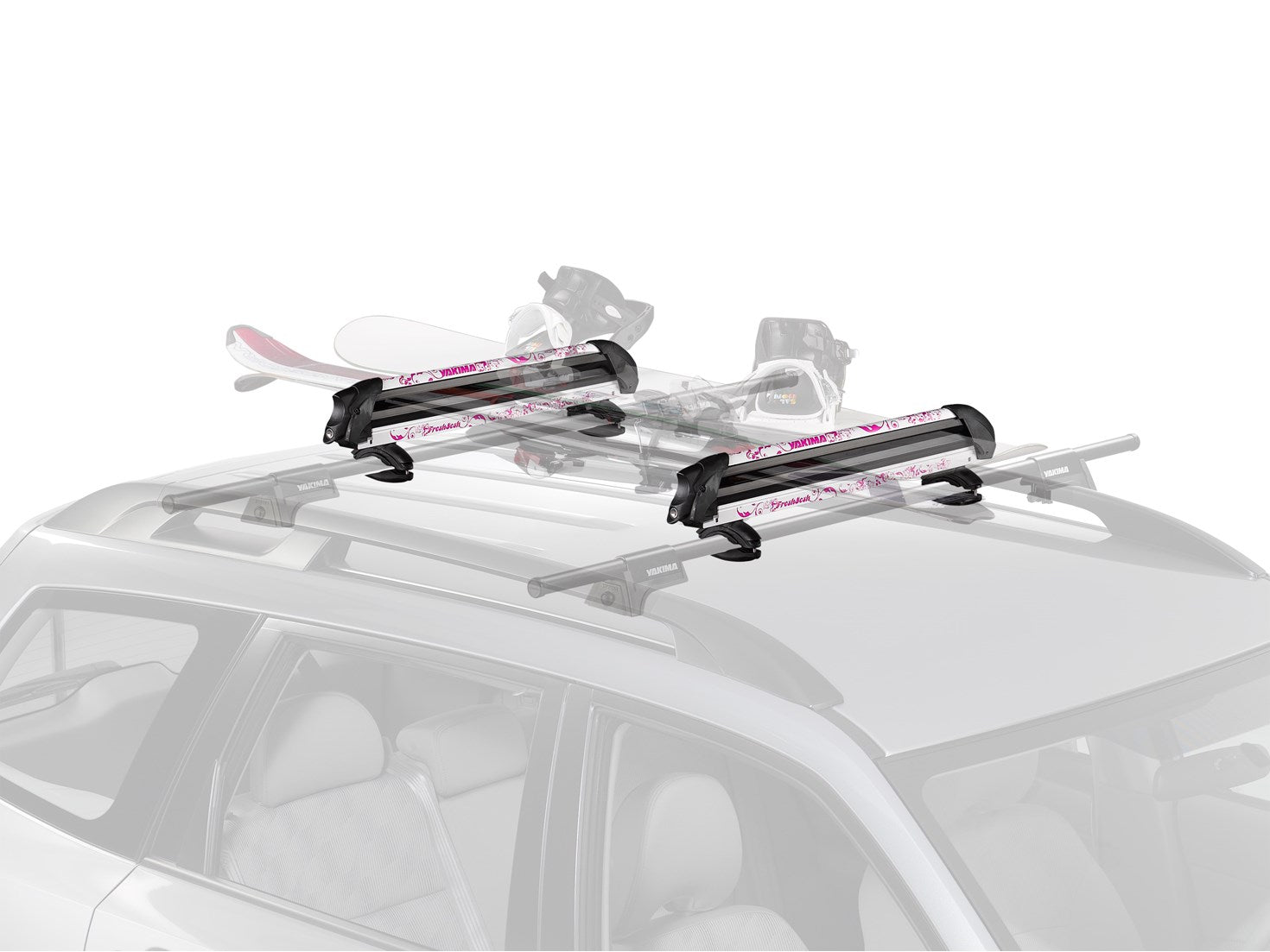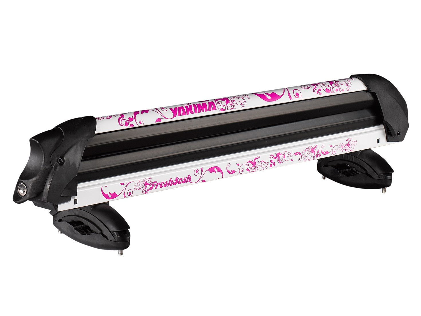 Ladies and germs, we now present a rooftop snow mount with style, flash, sex appeal and plenty of pizzazz: the FreshSesh. Not only does it carry loads of skis and snowboards, it looks extremely spiffy on top of your car. Customize with two different sets of graphics – Snow Camo or Bubblegum – and enjoy a plethora of envious looks from fellow travelers on your way to the slopes.