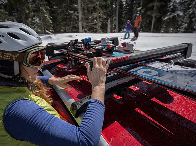 Blue groomers and fresh powder, the FreshTrack 6 is the perfect mount for loading the crew and finding first tracks. Wide enough for four boards or six pairs of skis, simple to mount on virtually any roof rack - no tools needed - and super easy to use, it's great for quick getaways and dawn patrol starts. One-button access allows gloves-on operation, and the built-in SKS locks secure your gear.