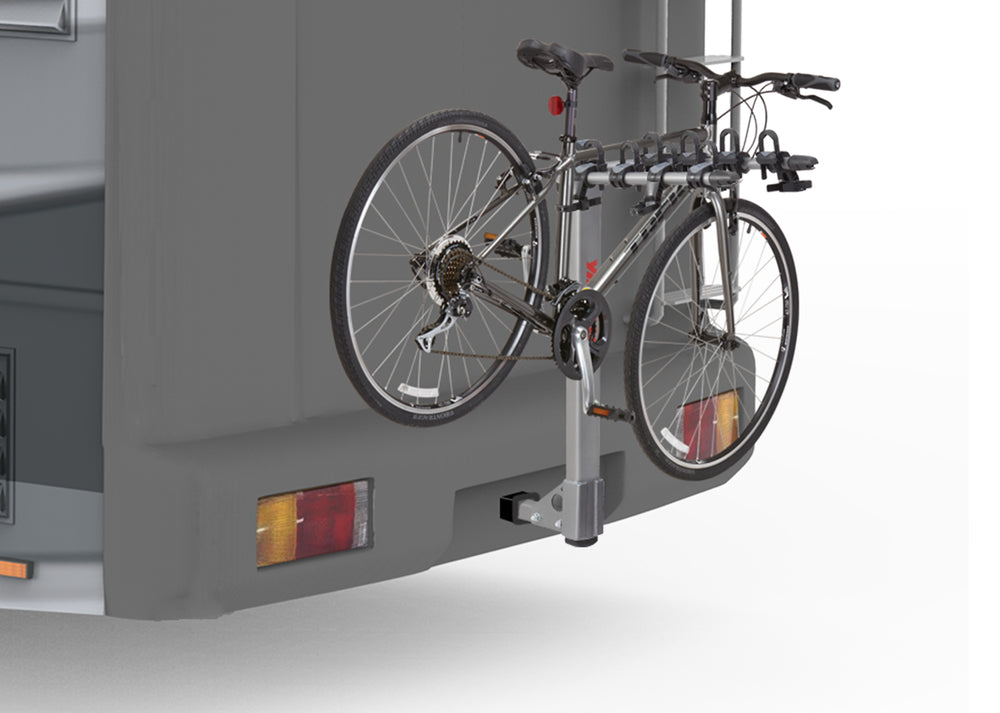 The LongHaul is a bike rack designed, built, and thoroughly tested to stand up to the long miles and rigorous demands of RV and travel-trailer use. Durable, stable and secure, the LongHaul carries four bikes with ease in the SuperCush ZipStrip™ cradles. The LongHaul is easy on and off, includes folding arms and a built-in bottle opener. Exceptional security is built in with a full SKS security package that locks your bikes to the rack and the rack to the vehicle.