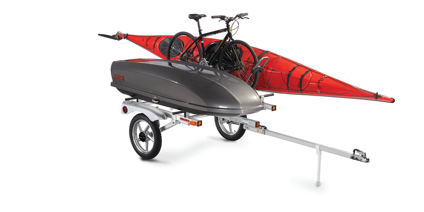 Never be forced to choose between your favorite activities and gear. Maximize your gear hauling choices by adding a sturdy, lightweight trailer.The RackandRoll trailer is made of lightweight aluminum and offers a stable, secure ride for *all* your gear. Stores easily upright in the off-season.