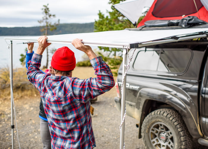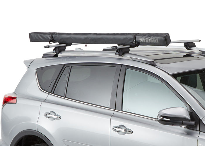 Made for the shade, this awning delivers excellent protection from searing sun and sudden showers. It mounts quickly and easily to the side of your base rack and only takes up six inches of bar space so it won't crowd your kayaks, cargo boxes, or bikes. It's super easy to use - just pull it out window-shade style and insert the poles when you get to camp. The light, strong nylon canopy has a waterproof PU coating to shed rain and delivers 42 square feet of shady coverage on summer days. Universal mounting hardware fits most roof racks.