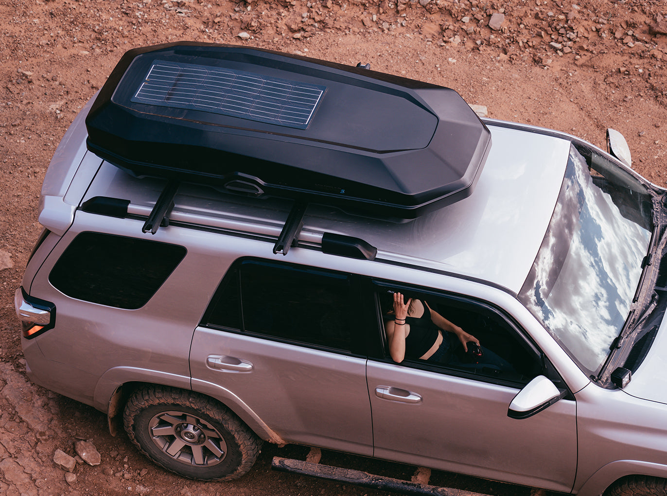 Sun’s out, power’s on. The CBX Solar blends clean-lined, modern aesthetics with a first-of-its-kind integrated solar panel. We teamed up with Sunflare to create a solar panel capable of delivering a 36W/5-volt output for when you’re adventuring off the grid. With 2 USB ports, it provides enough juice for a small campsite, won’t drain power from your vehicle and can charge phones, tablets, camping lanterns and action cameras. An integrated, easy-grab lid handle locks gear inside, and the removable torque tool stows away to free up all 16 cubic feet of available space for your gear.