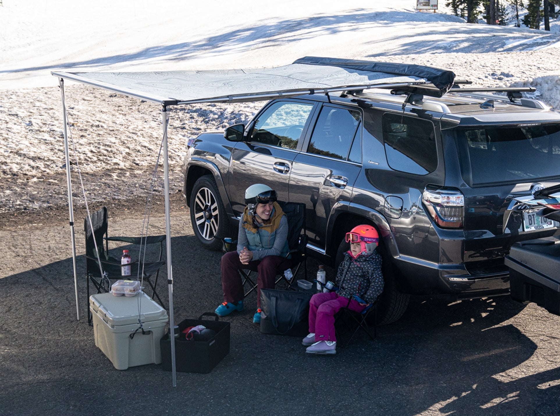 Don’t let its low-profile fool you: this awning packs small and delivers big. From sideline cheers to ridge line views, the SlimShady offers excellent protection from searing sun and sudden showers. It mounts quickly and easily (no tools needed!) to your roof rack crossbars, and only takes up six inches of bar space leaving plenty of room for cargo boxes, bikes, or boats. Super easy to use—just roll it out and set-up the poles—its light, strong polyester canopy has a waterproof PU coating to shed rain and serve up plenty of shady coverage on summer days. Available in three sizes, so you’re covered no matter how far, or near, your adventures take you.